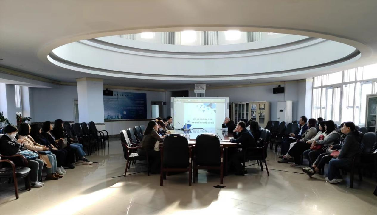 如何促进本科教育教学高质量发展是每一位教师需要深入思考的问题,也是推进吉林大学迈向世界一流大学每一位教师肩负的重要责任。会后,各课程团队和全体教师积极践行会议精神,在全院上下开展了不同程度的讨论。大学英语、试验班英语、通用学术英语、大学英语写作、高级英语视听说、英汉翻译基础、英美概况、英美文学赏析、中国文化的英文表达等十余个课程团队于10月14日-18日期间召开系列专题讨论会,就如何推动课程教学由‘以教为中心’向‘以学为中心’转变、人工智能赋能大学外语教育教学、推动科研成果反哺本科教学、建立科学合理的教育教学质量评价机制、调试小班教学规模并改进教学效果等进行了深入探讨。各团队安排共计近40名骨干教师进行“以 OBE 为基,借 AI 之力,行科研反哺”等多个教学分享及展示。教师们对分享内容表现出浓厚兴趣,并纷纷就课程内容与建设发表意见。各团队教师们同时围绕如何成为“好老师”、“好课堂”展开了热烈讨论,老师们认真研讨并分享经验。学院院长潘海英教授出席并参加了部分教学讨论会。