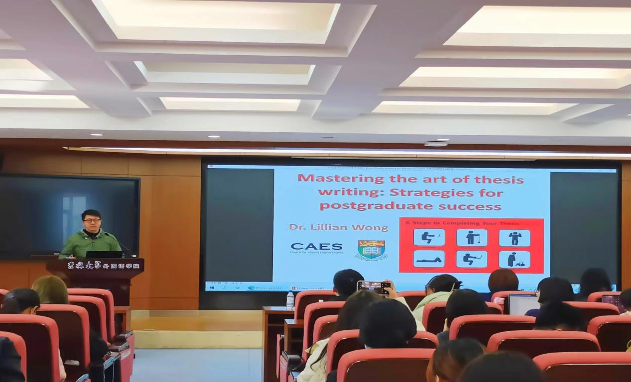 为提升学院研究生培养质量、提高研究生学术英语写作水平,2024年3月15日,公共外语教育学院特邀香港大学Dr. Lillian Wong为学院师生开展题为Mastering the art of thesis writing:Strategies for postgraduate success的英语学术写作讲座。此次讲座在外语楼500报告厅举行,姜峰副院长主持,部分研究生导师及研究生参加。