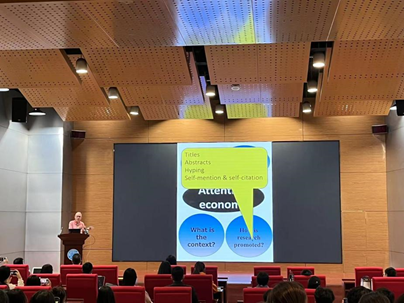 讲座由副院长姜峰教授主持,姜峰教授对Ken Hyland教授的到来表示了热烈的欢迎。Ken Hyland教授的学术讲座分享了如何通过有效的学术写作提高研究生的科研素养,以提升论文发表质量。深入浅出地讲解了学术写作的核心要素和技巧,分别从论文标题、摘要、自称语的运用等方面详细介绍了如何使论文学术写作更具吸引力及如何顺利发表学术研究。