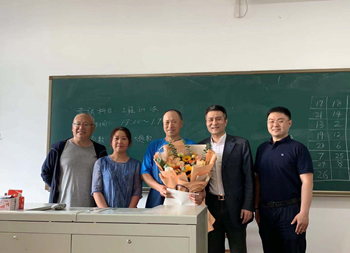 首先,贺强书记简要介绍学院“暖心课堂”活动的初衷。“暖心课堂”是公共外语教育学院党委为每一位即将退休离开教学岗位教师,在学期末课堂上开展的慰问活动。贺书记代表学院向韩老师献上鲜花,对于他二十余年来在教书育人的岗位默默耕耘,无私奉献表达了最真挚的谢意,并对他退休之后开启人生新征程送出了美好的祝愿。