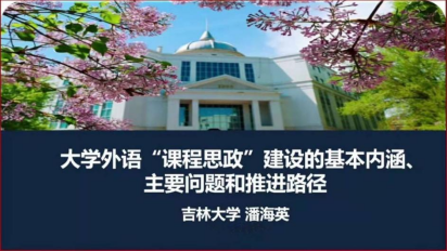 最后,潘院长讲解了大学外语“金课”建设的具体实例,阐述了案例实际教学中的分析讨论 、收集资料、表达观点、评价文本等若干具体步骤,生动展示了思政建设与课程内容的有机融合。