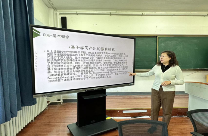 首先由课程团队负责人陈琳老师从OBE模式下的课程整体设计进行了汇报。她首先介绍了0BE模式的基本概念内涵以及其在高等教育领域日渐兴起的趋势,然后从课程目标设计和教学活动两大方面进行讲解和示例。她指出,基于OBE模式,教学目标的设计应依据产出成果反向设计,避免过于宏观或微观。之后,陈琳老师结合中国文化的英文表达课程,展示了OBE模式下如何设计多样化的教学活动,并介绍了具体的方法,流程以及评估方式。