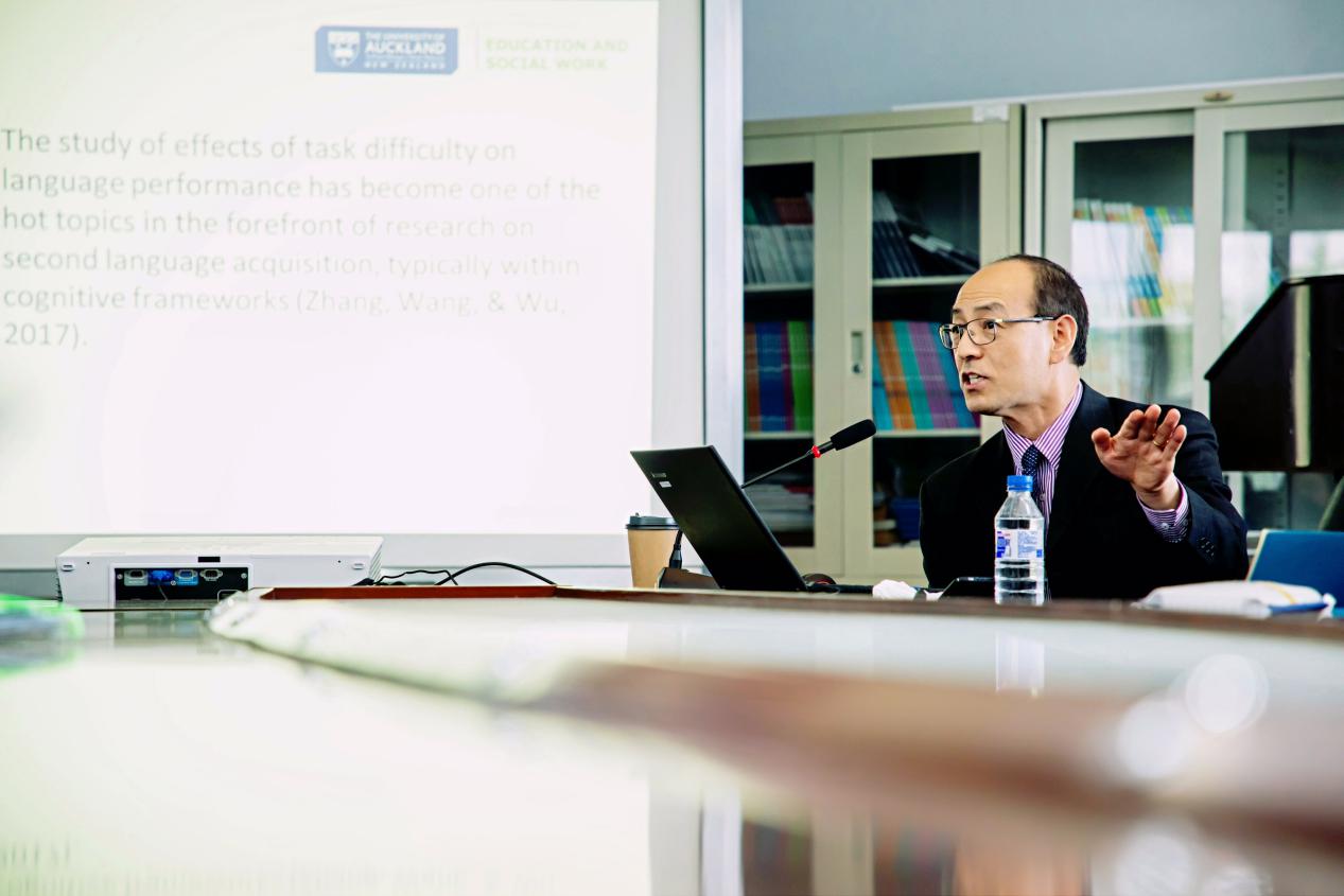 2019年5月28日,应公共外语教育学院的邀请,新西兰奥克兰大学教育学部副部长、应用语言学教授、博士生导师,原吉林大学“长白山讲座教授”、山西省“百人计划”特聘专家张军教授在外语楼报告厅做了题为“Four Decades of Research into Task Complexity in Language Acquisition: A Bibliometric Analysis Using CiteSpace”的学术报告。讲座由公共外语教育学院潘海英院长主持,来自吉林大学、沈阳师范大学、哈尔滨师范大学等百余名师生共同参加。