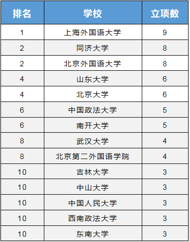 2019年国家社科基金中华学术外译项目立项数排名前十学校