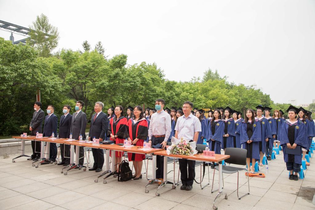 在雄壮的国歌声中,毕业典礼正式拉开帷幕,公共外语教育学院2020届全体毕业生身着庄重的学位服迎接这一庄严时刻。