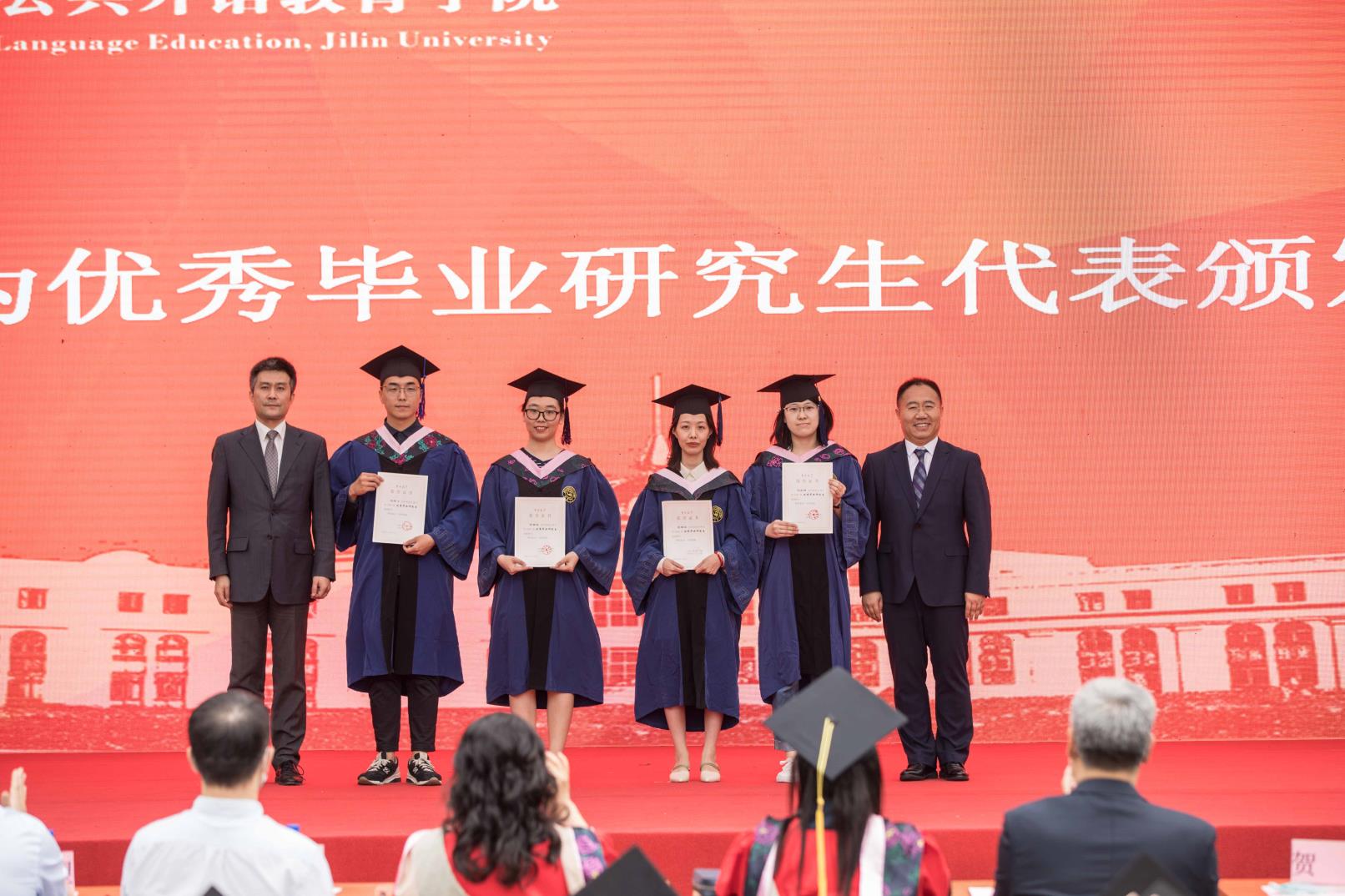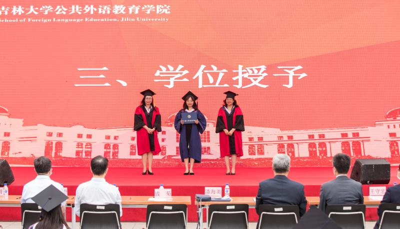 最后,全体师生合唱吉林大学校歌。合唱后,毕业生们与冯正玉副书记、全体院领导、老师合影留念,将这些人生中值得永远铭记的时刻定格在这一刻,毕业典礼暨学位授予仪式随之圆满落幕。公共外语教育学院2020届所有的毕业生们将带着学校和学院的祝福,以梦为马、建功立业,在新的人生历程中书写新的篇章,创造新的辉煌!