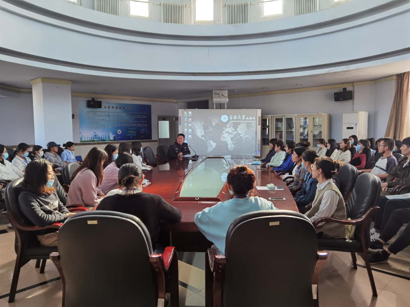 道路千万条,安全第一条。为了增强学生的消防安全意识,提高火灾防范和处置能力,共筑消防安全防火墙,公共外语教育学院于2020923号下午在外语楼6楼大厅举办了“防火安全教育”专题讲座。本次讲座由公共外语教育学院副院长梅松伟主持,校保卫处负责人董立明老师主讲。