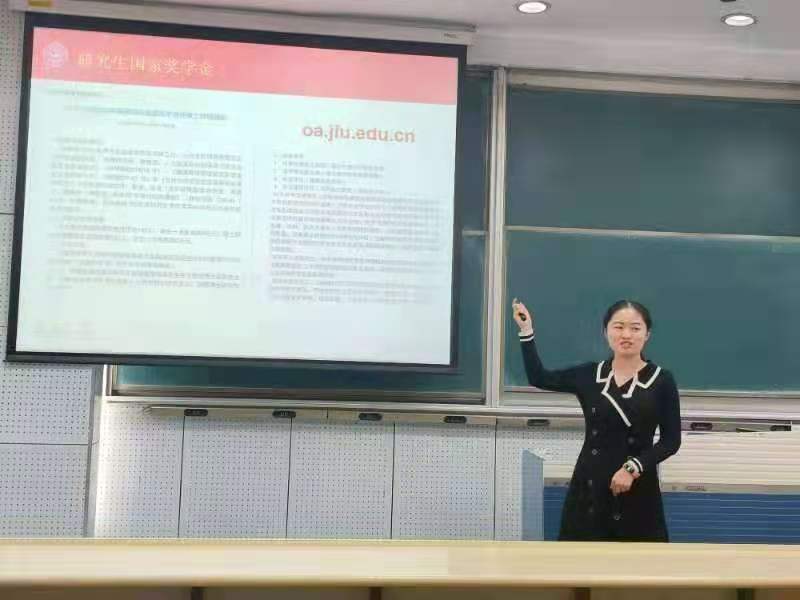 首先,公共外语教育学院研究生辅导员曾媛老师为大家详细讲解了吉林大学公共外语教学院的各项评奖评优细则,并鼓励大家在读研期间,积极进取,努力拼搏。