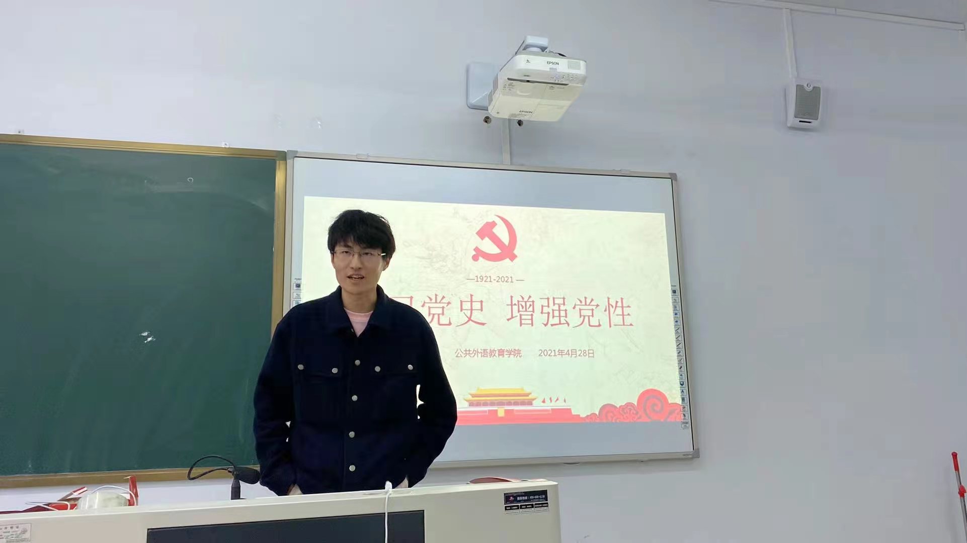 为纪念建党一百周年,弘扬爱国精神,传承红色基因,凝聚党员力量,2021年4月28日晚六点,公共外语教育学院研究生在经信楼D401教室举办了以“学习党史·增强党性”为主题的党史知识学习暨知识竞赛活动。2019及2020级全体党员、发展对象和入党积极分子参加了此次活动,本次活动由学院团委组织部金泰安同志主持。