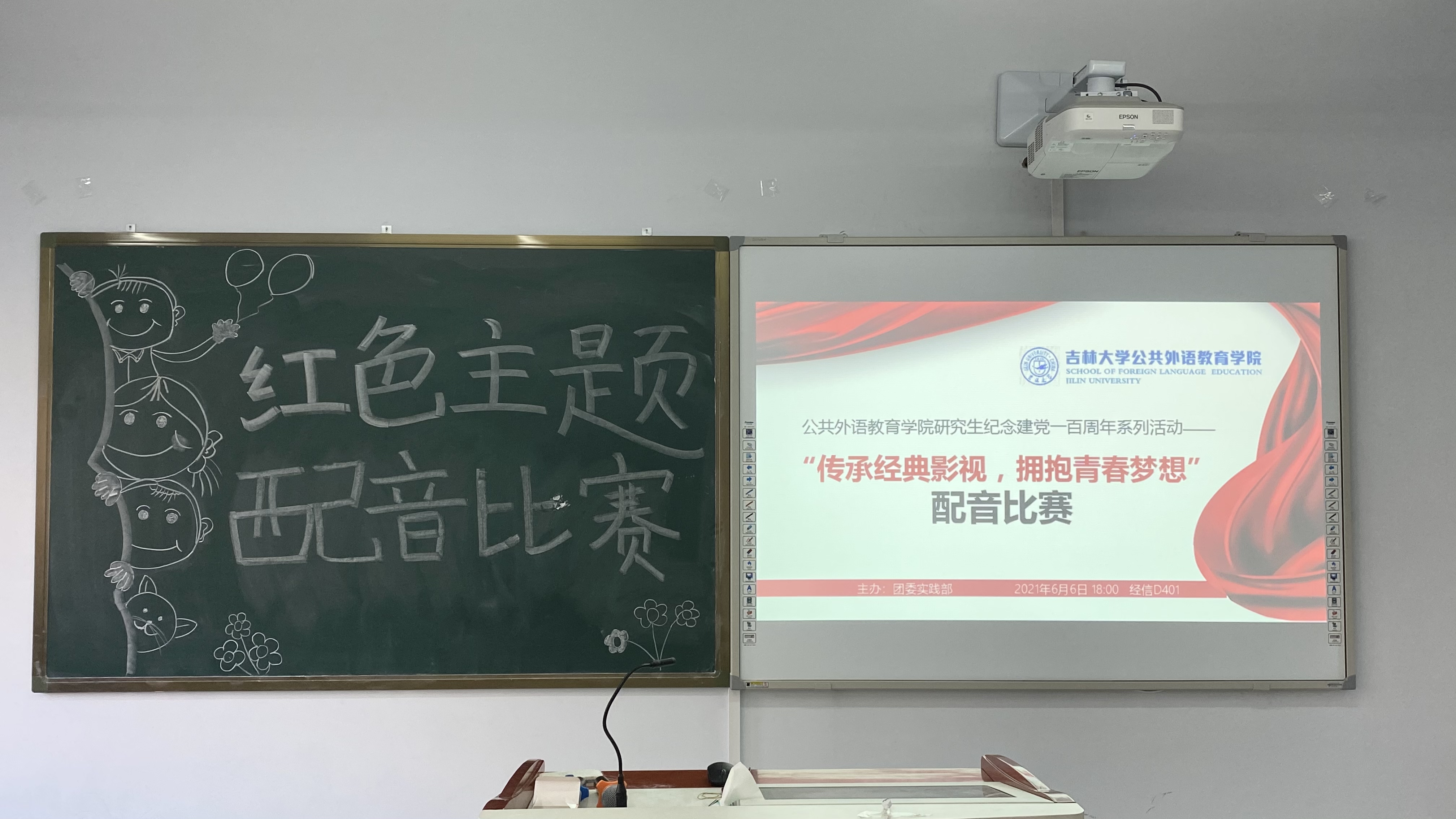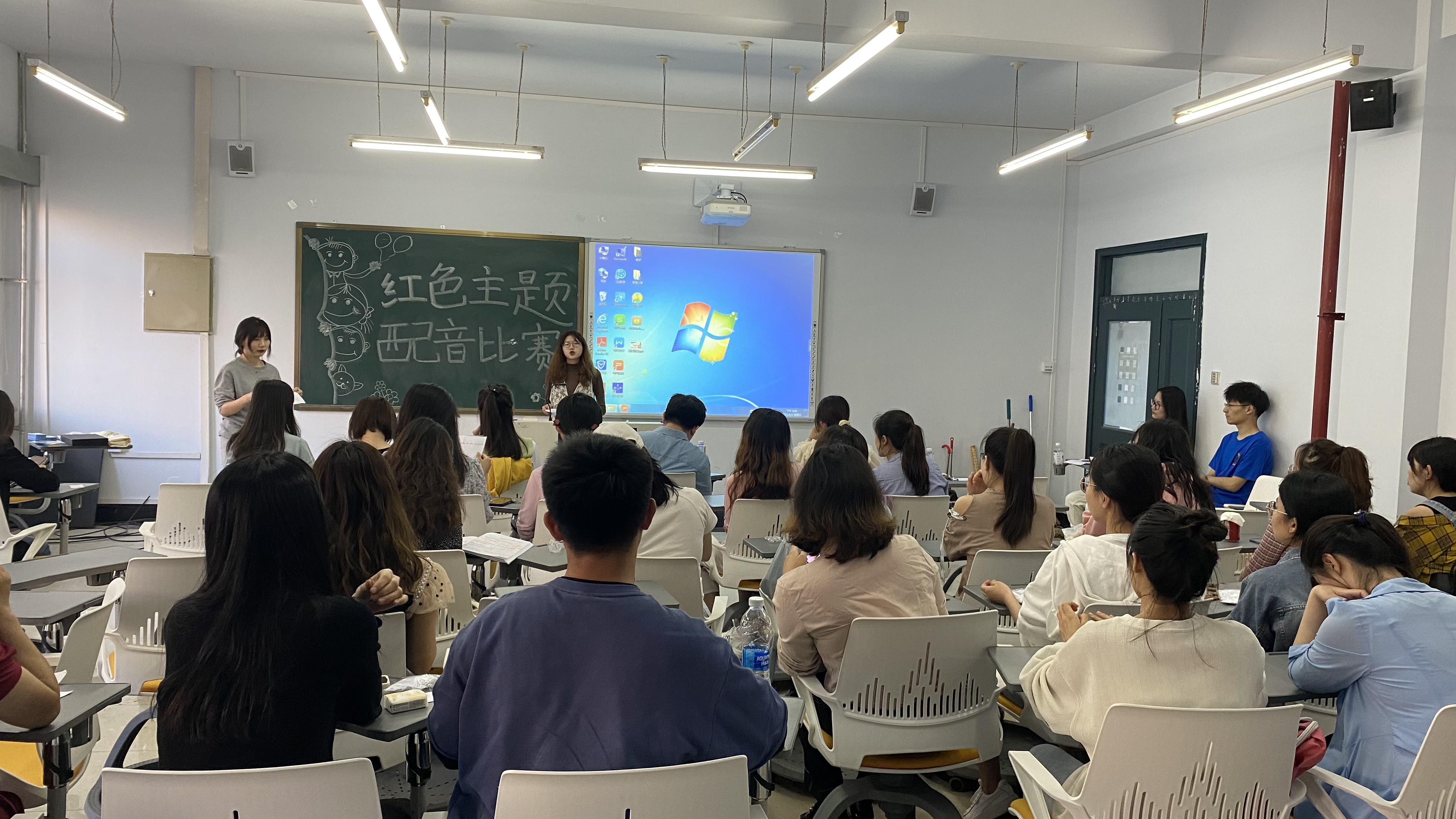 为纪念党的100周年华诞,传承红色精神,引导青年学生自觉践行社会主义核心价值观,体现学院特色及学子风貌,做好青年学生多方面发展自我能力建设,2021年6月6日晚上6点,公共外语教育学院团委于经信楼D401教室组织了以 “传承影视经典,拥抱青春梦想”为主题的配音大赛。团委副书记梁慧、实践部部长顾晓月、宣传部部长王颖、党员代表尤天来、研会学术部部长季云飞担任此次配音大赛的评委。2019级,2020级研究生共九支团队和个人参加了此次比赛,以汉、英、日三种语言现场演绎影视经典片段,将专业学习深度融入于党史学习教育。