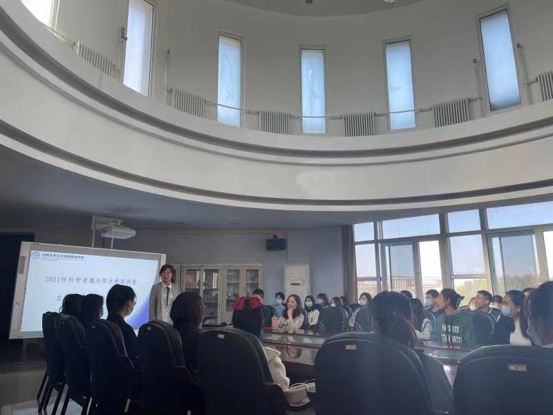 为了让2021级研究生新生了解研究生培养各环节及其要求、树立正确的学习态度,公共外语教育学院于10月8日上午8:30在外语楼六楼开展了科学道德与学风建设讲座,本次讲座由姜峰教授、朴玉教授主讲。