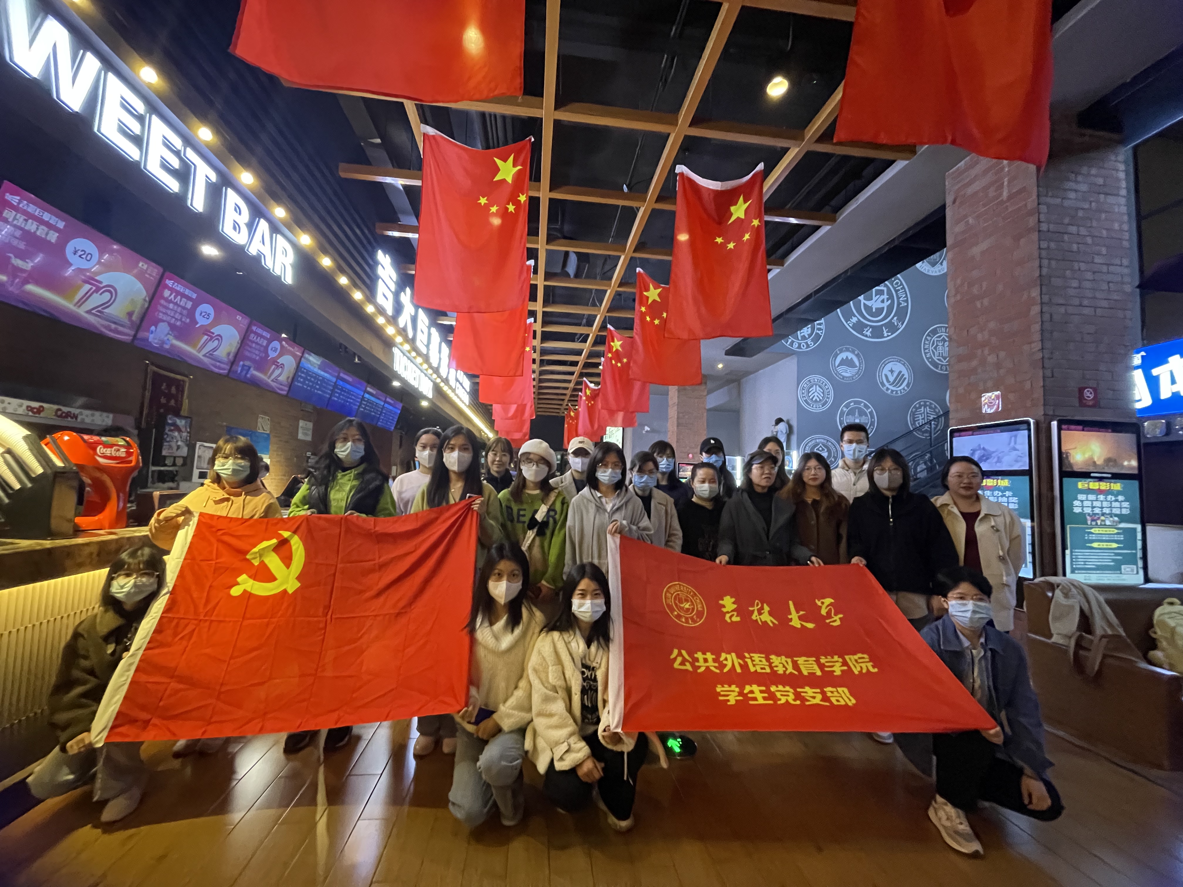 为了传承永不熄灭的爱国主义精神的火炬,重温抗美援朝历史,铭记先辈顽强抗争的精神,2021年10月28日18点,公共外语教育学院研究生党支部组织观看爱国教育影片《长津湖》,本次活动由辅导员曾媛带队,2020级、2021研究生党员参加本次观影活动。