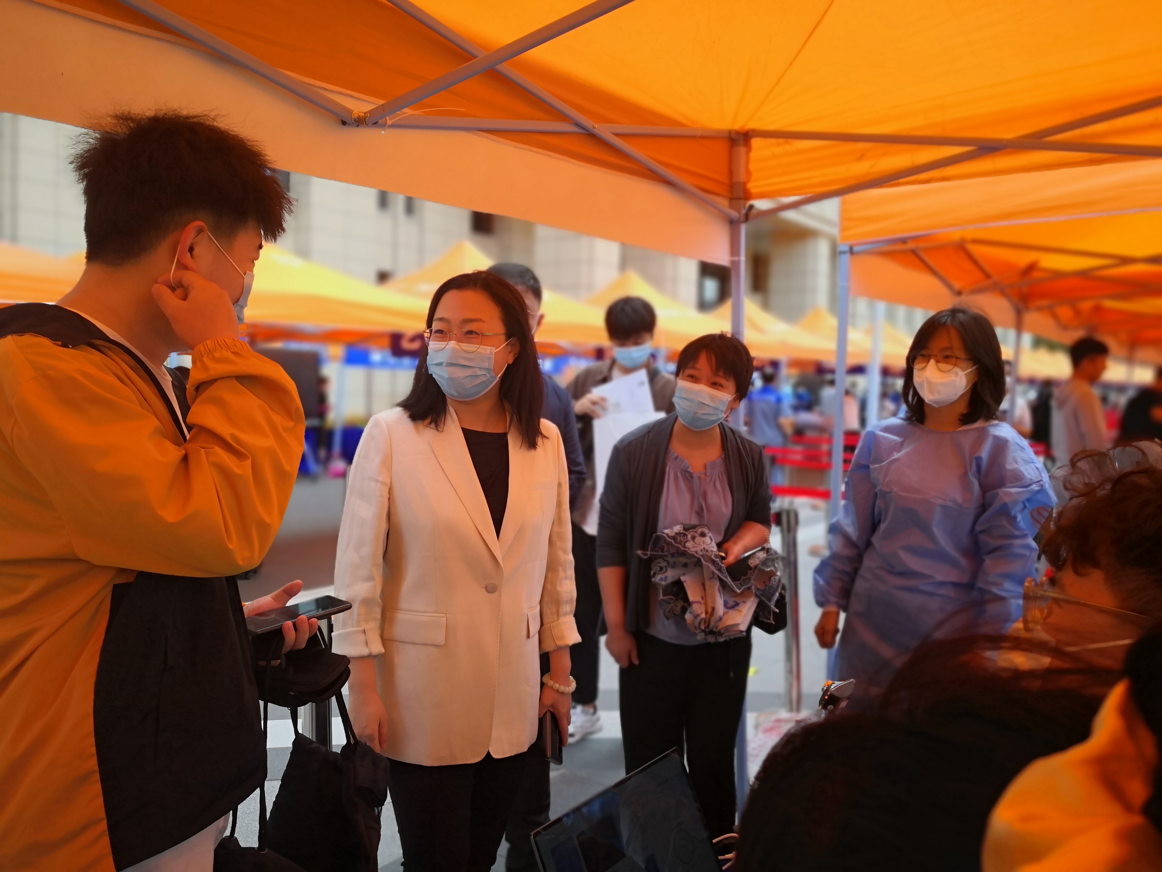 报到期间,公共外语教育学院党委书记贺强、院长潘海英、党委副书记徐杰和副院长沈斌至报到现场和新生宿舍慰问新同学和工作人员,辅导员曾媛老师全程陪同。贺强书记、潘海英院长与同学们亲切交谈,对大家的到来表示热烈欢迎,耐心询问同学们的旅途情况、入校感受和今后规划等等,并语重心长地提醒同学们要注意入秋保暖和防疫卫生。徐杰副书记询问工作人员的防疫物资是否充沛、早午饭是否按时吃、在外面值班是否辛苦,再三叮嘱大家时刻戴好口罩、提高防疫意识,并对大家饱满的精神状态和无私的奉献精神表示肯定。沈斌院长对报到人数详细了解后,对因疫情防控政策未能及时报到的新生情况加以了解及关怀。