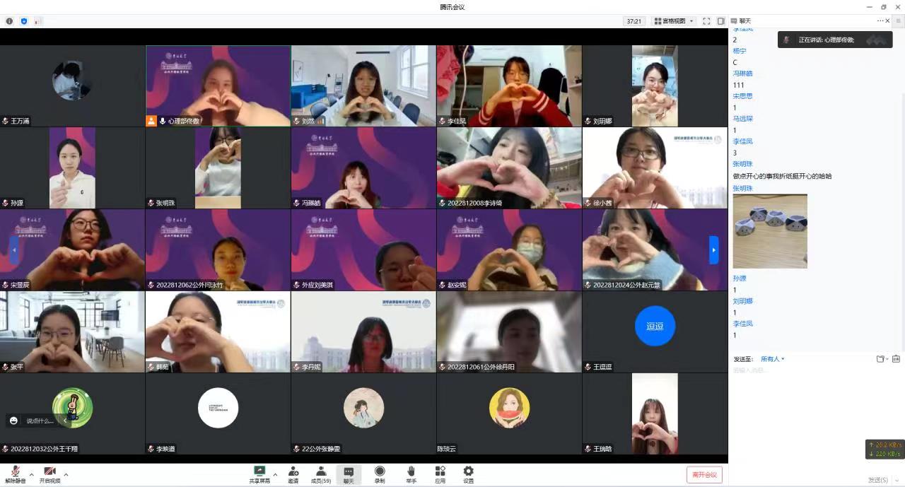 为帮助同学们适应新环境,平衡学习和生活的压力,消除同学们在抗击疫情中产生的情绪与心理压力,2022年11月23日公共外语教育学院研究生会心理部在腾讯会议平台举办了“朋辈协力·心理成长”系列活动---“我心我秀,放飞心声”线上交流及心理讲座活动。该活动由学生心理健康指导中心和学院心理辅导员指导,心理部成员主持,全体新生参与。