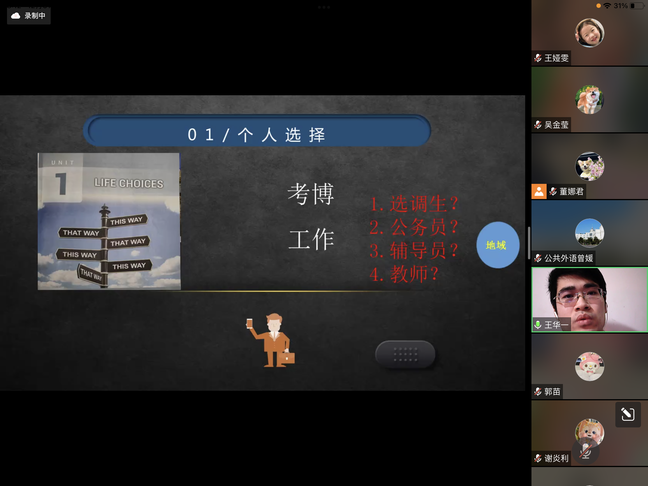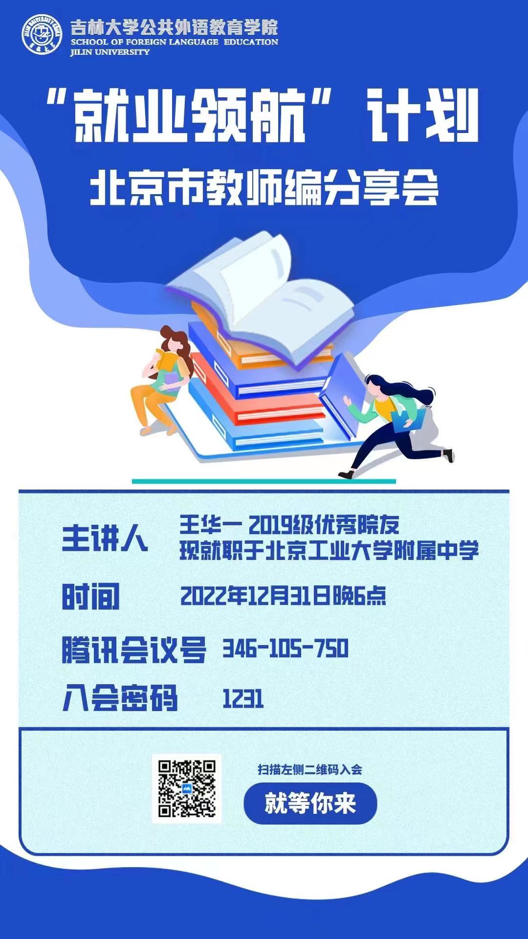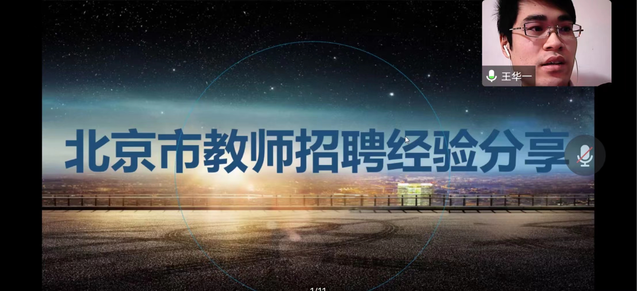 为发挥优秀毕业生模范带头作用,引导学生明确就业目标、制定就业计划规划,2022年12月31日晚6点,公共外语教育学院线上举办了北京市教师编分享会。此次分享会由辅导员曾媛主持,特邀请2019级优秀院友、现就职于北京工业大学附属中学王华一教师主讲,公共外语教育学院近百余名研究生参会。
