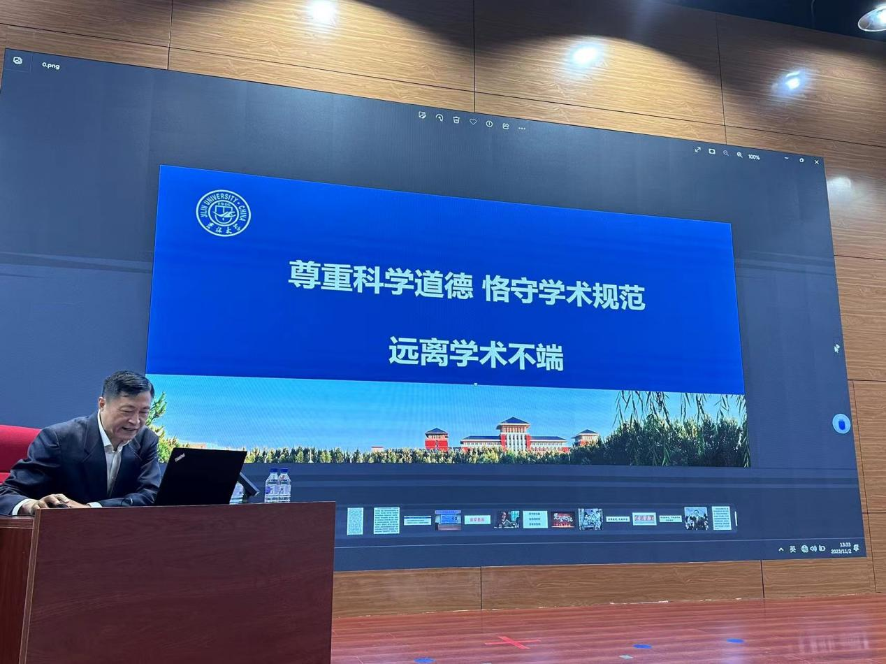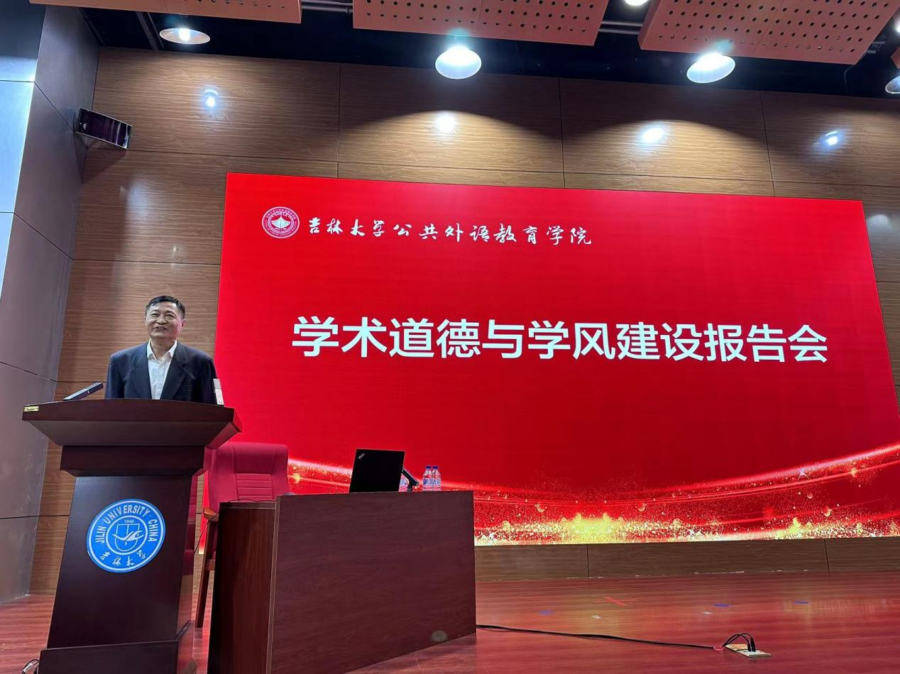 为深入贯彻落实习近平总书记关于弘扬科学家精神的重要论述和科技部、教育部关于加强学术道德建设的系列文件精神,根据学校学风建设总体规划和宣传教育工作有关要求,11月2日下午,公共外语教育学院在中心校区国际学术大讲堂举办了学术道德与学风建设报告会。报告会邀请了吉林大学校务委员会副主任、校学位评定委员会副主席、考古学院古籍研究所匡亚明特聘教授吴振武教授作为主讲嘉宾,由公共外语教育学院院长潘海英教授主持。学院主要领导、教职工及研究生共一百五十余人参会,社会科学研究院成果管理科工作人员刘卓老师应邀出席了本次报告会。