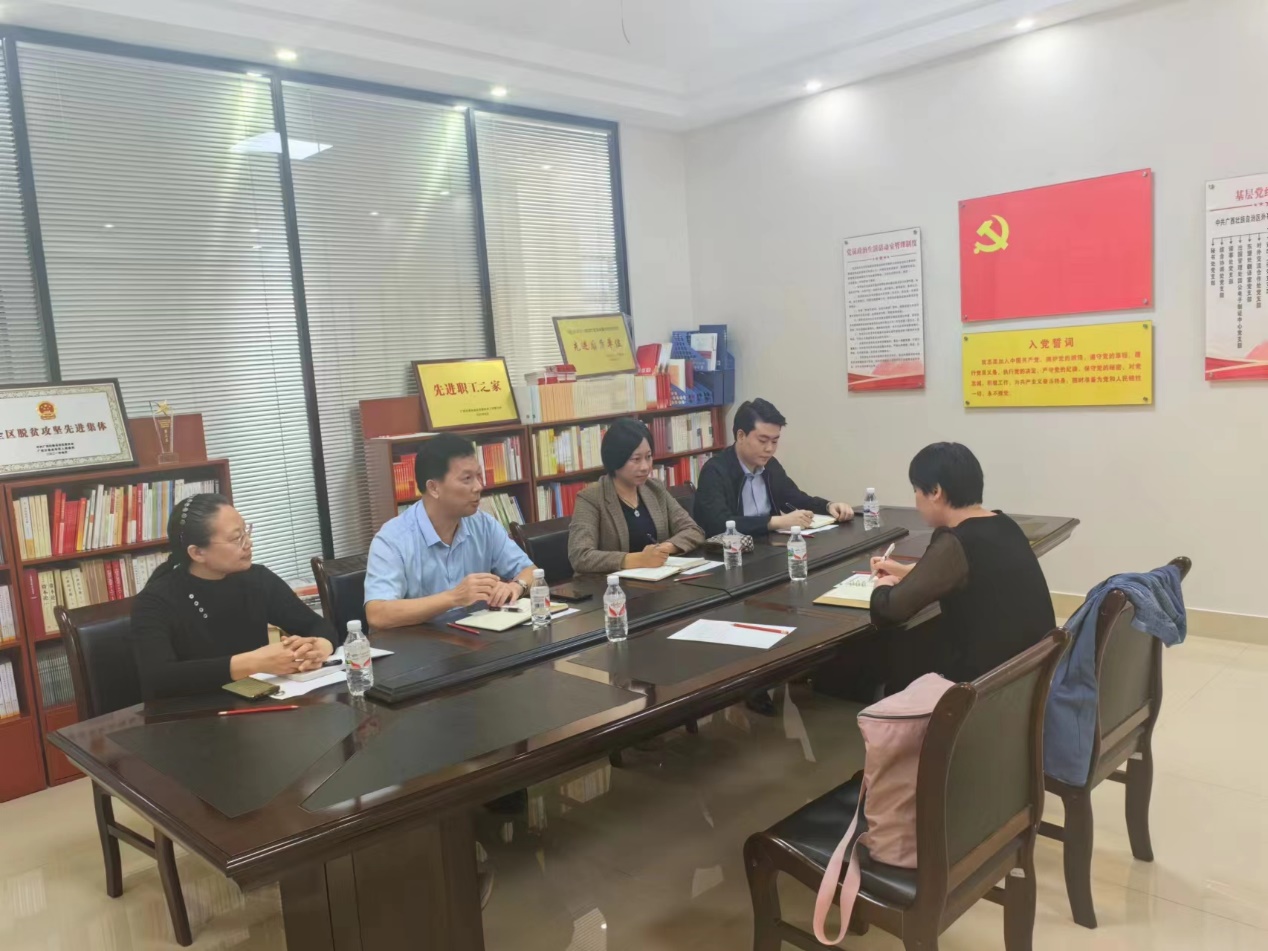 24日上午,徐杰一行与崇左市宁明县选调生王乃卉所在单位开展座谈,宁明县寨安乡人大主席闭青群、县委办公室副主任张婧、县委组织部青干股股长黄璞和县民政局干部游建腾参与座谈。