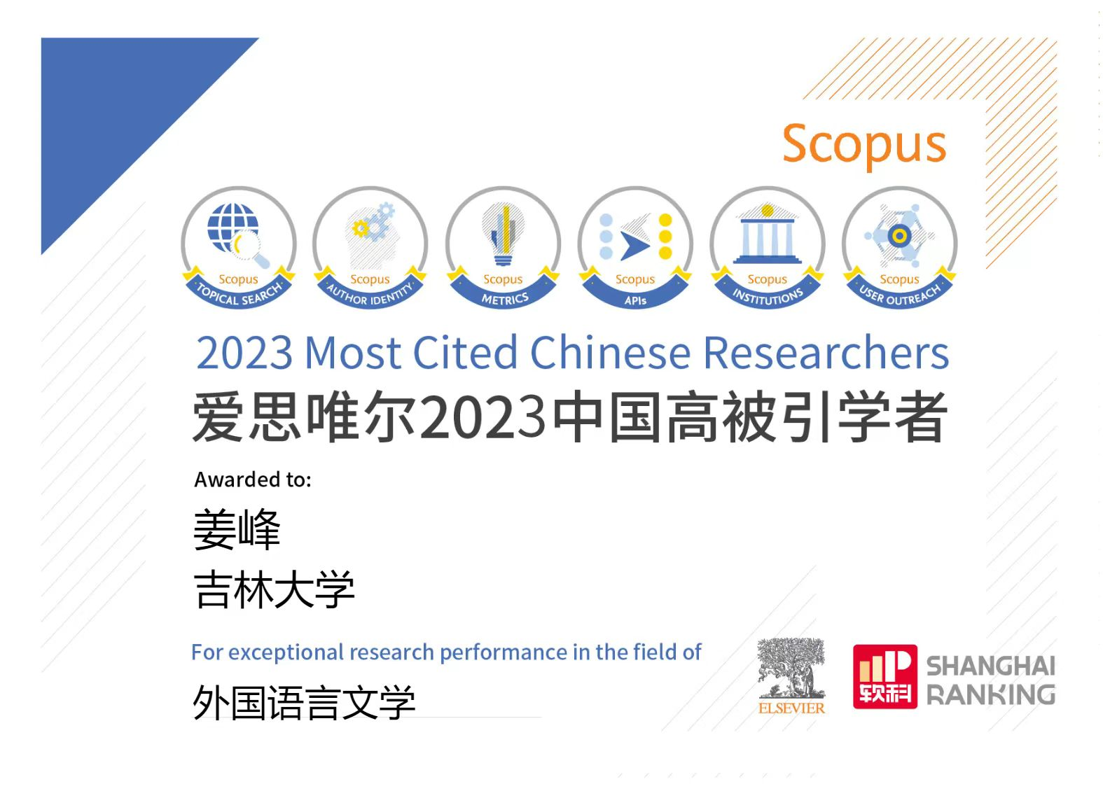 2023“中国高被引学者”上榜共计5801人,来自496所高校、企业及科研机构,覆盖了教育部10个学科领域、84个一级学科。其中,外国语言文学学科上榜33人。