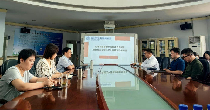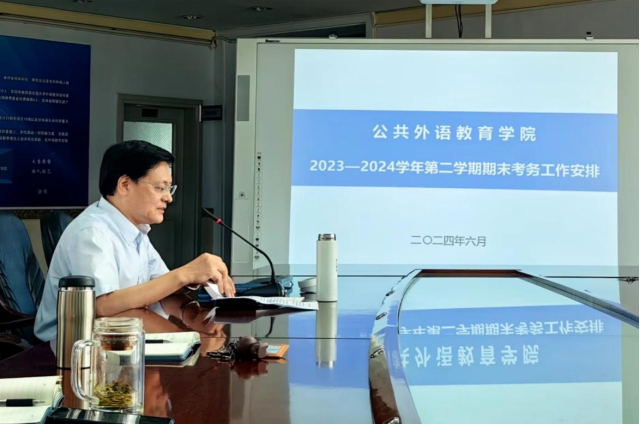 为更好地迎接本科教育教学审核评估,确保期末各项工作有序开展,落实“吉林大学本科教育教学审核评估工作推进会”及“吉林大学2023-2024学年第二学期期末考试工作会议暨考风考纪教育布置会议”的精神,2024年6月20日下午,公共外语教育学院召开本科教育教学审核评估工作推进会暨2023-2024学年第二学期期末考试工作会,学院领导班子、教学委员会全体成员、督学、学院教师教学发展中心主任、各教研室主任(副主任)、各支部书记、各课程团队负责人及骨干教师代表、管理团队全体成员参加了此次会议。会议由教学副院长王守宏教授主持。