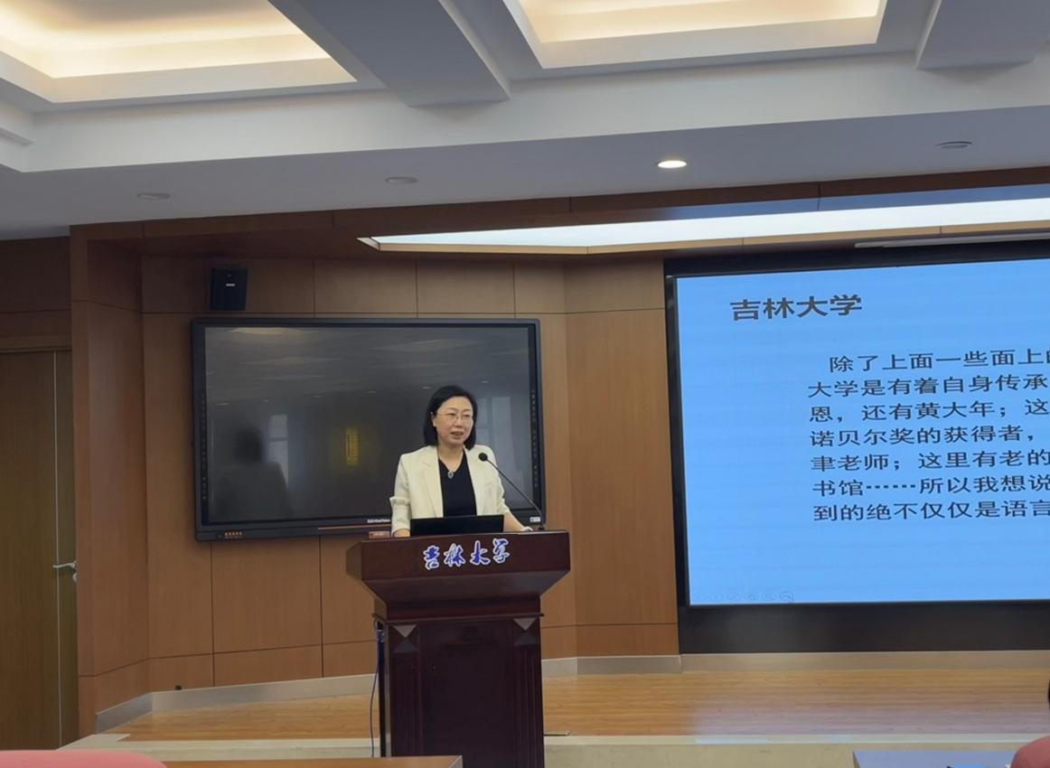 潘院长回顾了公共外语教育学院的发展历程,从历史沿革、学院定位、人才培养、学科建设、科研成果、以及国内外合作等方面介绍了学院的基本情况。潘院长提到,吉林大学是有着自身传承和精神的一所大学,学校和学院所提供的资源是立体化和多元化的的,同学们在这里能过学到和感受到既有知识,也有见识。潘院长鼓励同学们利用好学校资源,感受整体氛围,走出去,多沟通多接触。
