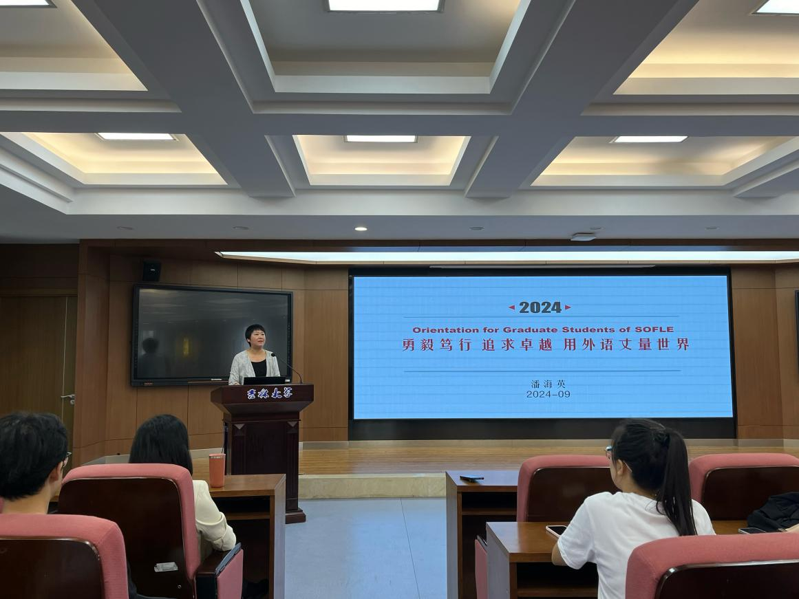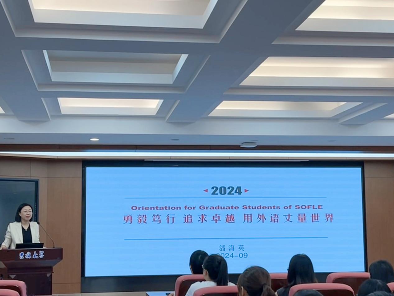 为帮助2024级研究生加深对学院的了解,2024年9月4日上午在外语楼500,学院院长潘海英教授以“勇毅笃行,追求卓越,用外语丈量世界”为主题,讲授别开生面的开学第一课。学院党委副书记徐杰主持,辅导员林明帅及2024级全体研究生新生参加。