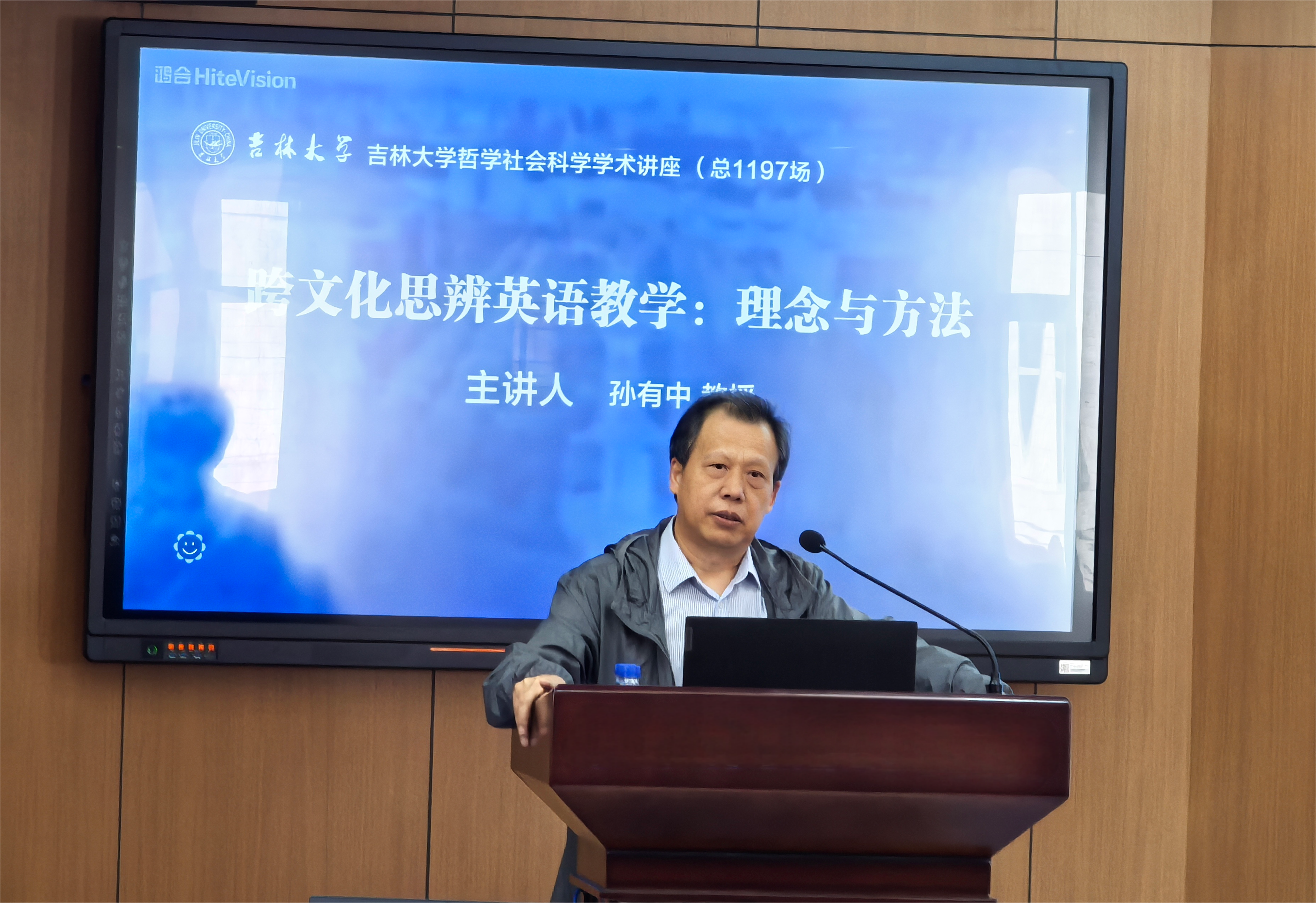 2024年9月23日,由吉林大学社会科学研究院、公共外语教育学院共同主办的吉林大学哲学社会科学学术讲座“跨文化思辨英语教学:理念与方法”在外语楼500报告厅举行。主讲人孙有中,北京外国语大学教授、博士生导师,教育部高等学校外国语言文学类专业教学指导委员会主任,《国际论坛》、《中国ESP研究》等期刊主编,主要研究领域为外语教育、跨文化研究、美国研究。讲座由公共外语教育学院院长潘海英教授主持。