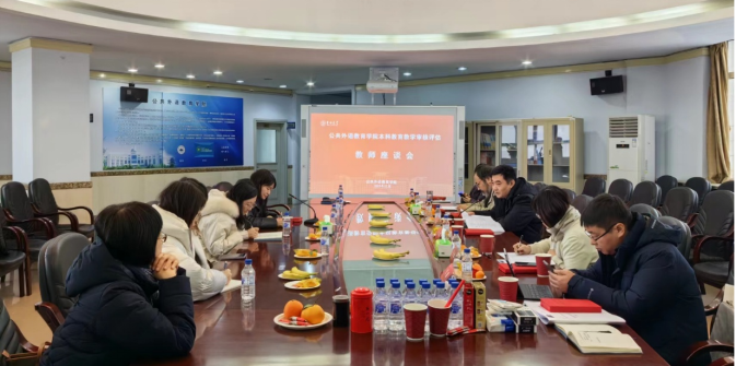 2023年12月14日上午,人文学部专家组到公共外语教育学院召开本科教育教学审核评估第一轮学院自评线下考察会。专家组组长蔡大伟,副组长郝陶群,专家孙明丽、孙一、王延彬,OBE指导专家杨永健及专家组秘书张强莅临我院指导;公共外语教育学院领导班子全体成员、教学委员会主任、校级督学、教师代表及教学办全体成员参加会议。